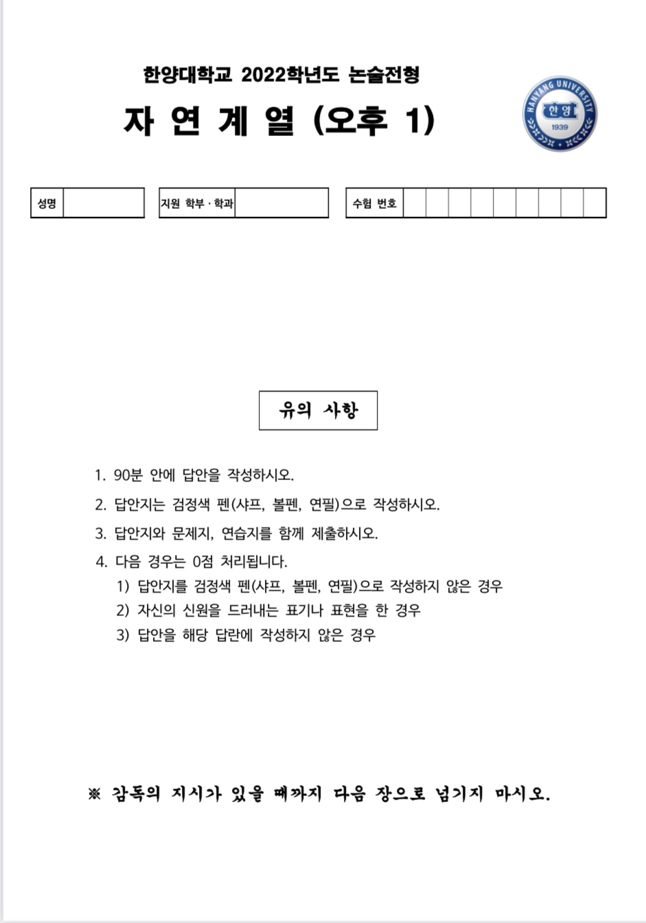 2022 한양대 수학논술 오후1