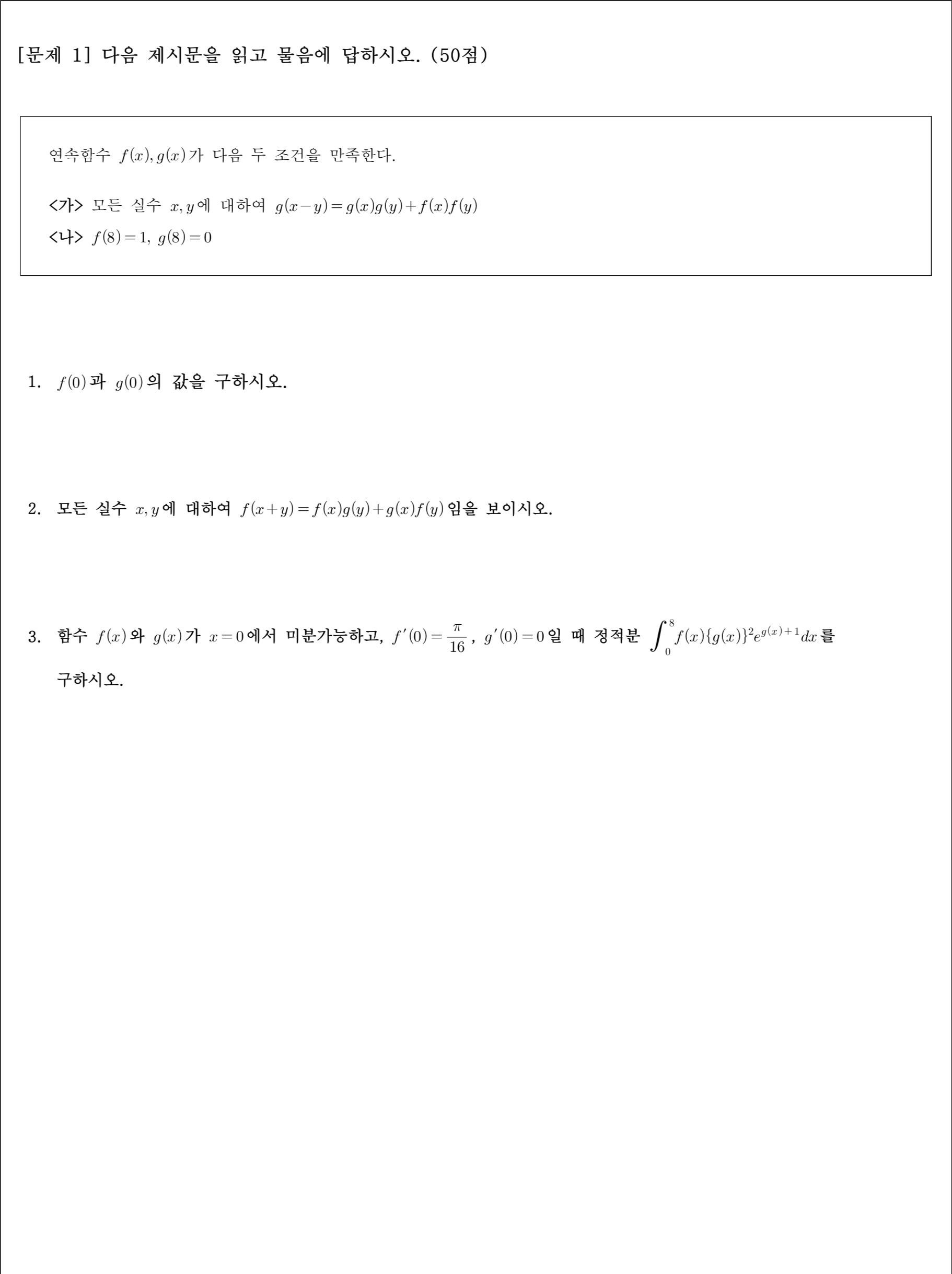 | 2018년도 한양대 수학논술(자연계열) 오전 문제, 해설, 모범답안 (1) | 2023.04.29 |